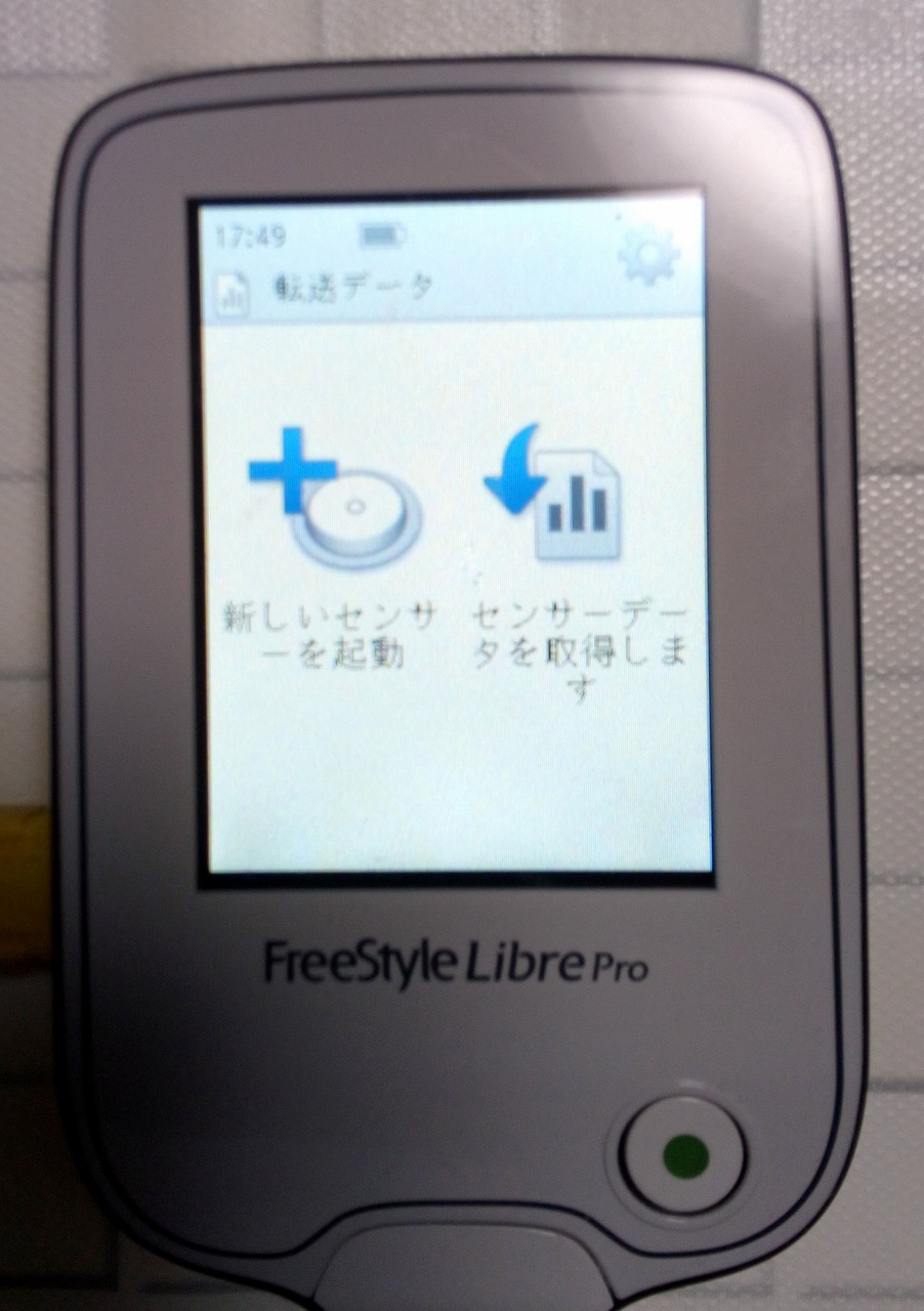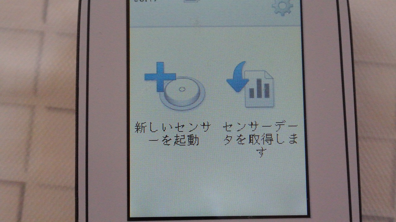 センサーを装着してから、機器のスイッチを入れる。画像のようになっているので、「新しいセンサーを起動」を選択して、機器をセンサーに近づける。ピーと音がなり、画面に1時間経ったら測定開始というメッセージが出る。残念ながら、その画像は撮り忘れたが、確かそんな感じだったと思う。