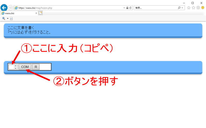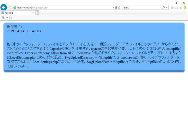 操作方法は、図のように、持ち出したい文字列をコピーして①のところにペーストする。ここのペーストする部分は目立たぬように小さくしているので、上手くペーストしてほしい。次に、②のボタンを押すだけだ。すると、次のような画面になり保存が完了している。図の2行目は保存した時間が表示されている。これがファイル名となり拡張子にtxtが追加されたファイルが、このスクリプトを置いたディレクトリに作成されているので、利用はそのファイルを開いてコピーするだけだ。画面の下の文字は、実際にファイルに保存されている内容である。もちろん、改行も正しく行われている。