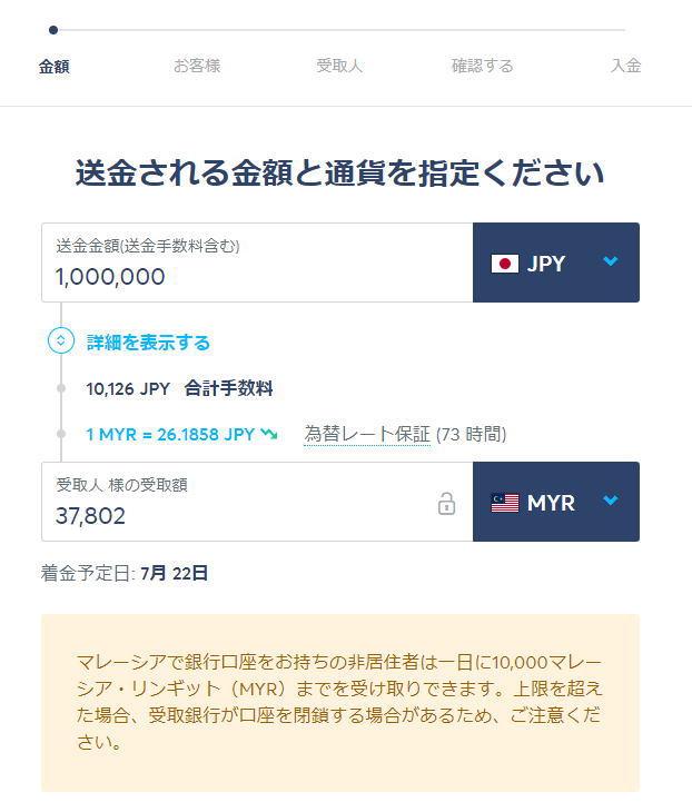 トランスファーワイズは手続きしたときの為替相場がきちんと表示されているので今が安いのか高いのかが良く分かり安心だ。そして、その金額は48時間保障される。だから、手続きした以降にリンギットが高騰しても元の値で送金できるので安心だ。