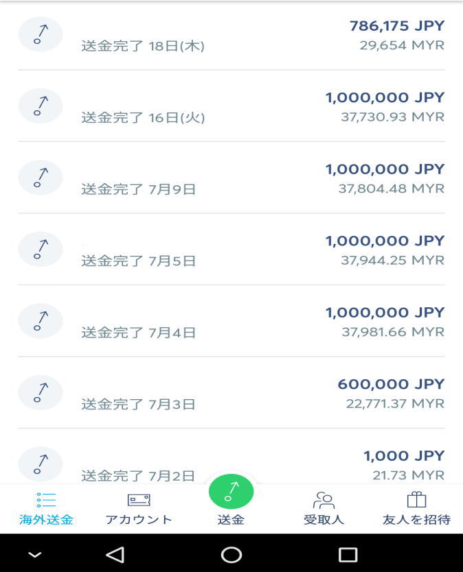 何れにしても、問題なく20万リンギットを送金することができた。私の場合は当面マレーシアで使うお金についてもATMで下ろせるように20万4千リンギットを入金したが手数料は55230円である。これだけの手数料で送金できたのは本当に安価と思う。金融機関だと手数料が安くとも為替相場に追加した額で換金が行われるので結果的に高くなるということだ。その点、トランスファーワイズは我々が普段から見ている為替相場どおりに換金されるので手数料のみを考えれば良く、本当に明瞭会計となっている。