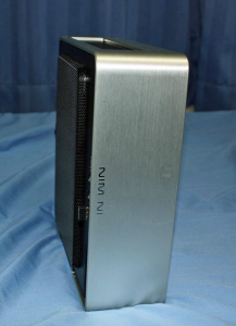 そこで、デザインが優れているものがないかと探したケースがin win社Mini ITX ケースです。このケースは重厚のアルミ質感 で人気が高く価格コムでPCケース人気売れ筋ランキング10位(H30.7.22現在)のもので、外観は写真で分かるとおり、まるで高級オーディオ装置を彷彿させるものです。ランキングでは安価なケースが上位に入りがちな中で、結構、値が張る本ケースが上位を占めるのは、それだけ、できが良いからに他ならないと思います。