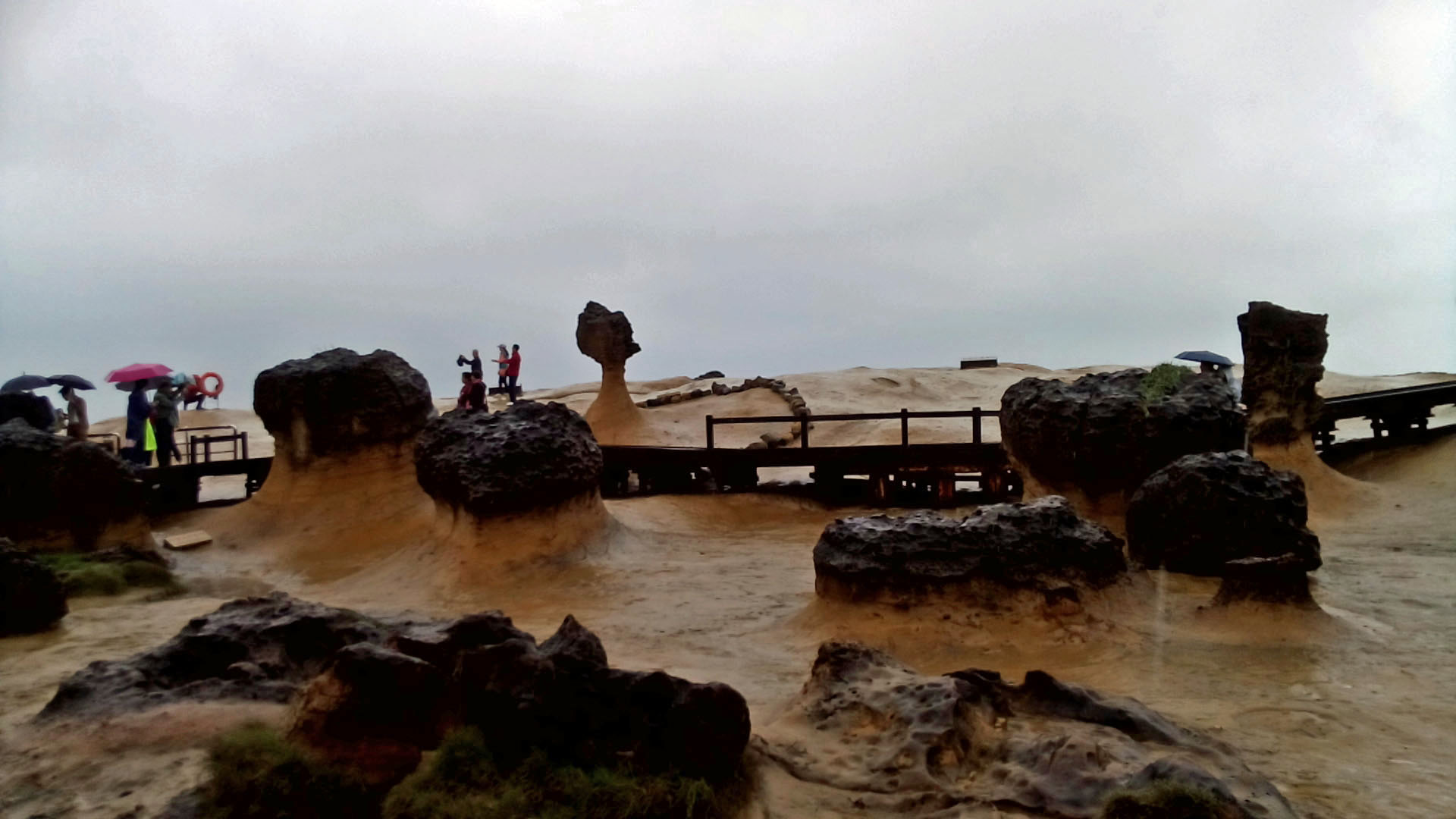 野柳に到着。ガイドは星形の目印を持って入口まで案内。まるでコメットさんのようないでたち(知らないだろうな~)。