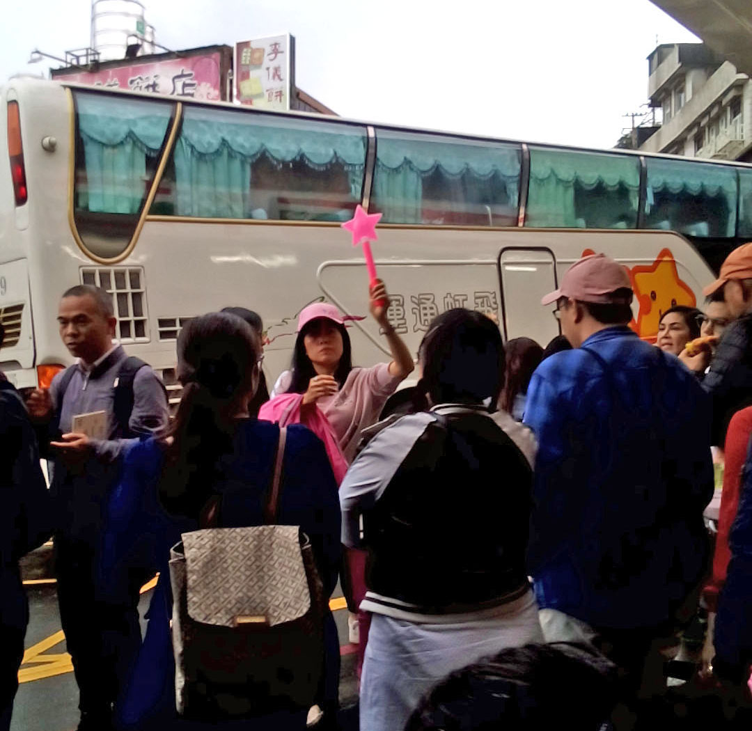 十分に向けて出発。このツアーに昼食が含まれていない理由として、多国籍の人達なので対応不可とのこと。「仇分に着くのは1時半ごろになるのでお腹が空く、なので、・・・・・」